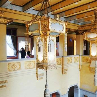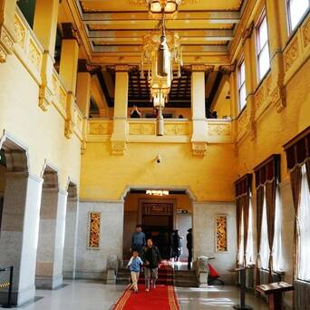 整体建筑风格,既采用了中国传统宫殿样式,和日式古代建筑的许多构件,又融入了西方建筑元素,属于近代折中主义范畴,是长春市内唯一的庑殿顶建筑,站在回廊即可俯瞰1楼的“广间”。