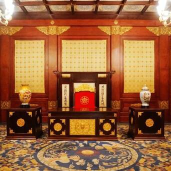 1. 同德殿,是一座专为“满洲国”皇帝溥仪建造的,集办公、休闲、娱乐为一体的,具有临时过渡性质的皇家宫殿,主要供皇帝国事活动及内廷娱乐之用。