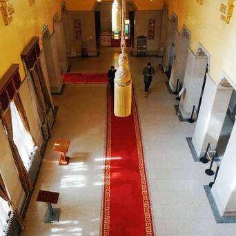 3. 怀远楼,作为溥仪祭祀祖先的场所,1934年建成,建筑面积1483.69平方米。溥仪取《中庸》中:“柔远人则四方归之,怀诸侯则天下畏之”句中“怀”“远”二字命名,意在怀念和感恩于列祖列宗,相当于北京的太庙。建筑内部除奉先殿外,还有尚书府,侍从武官处和清宴堂等。