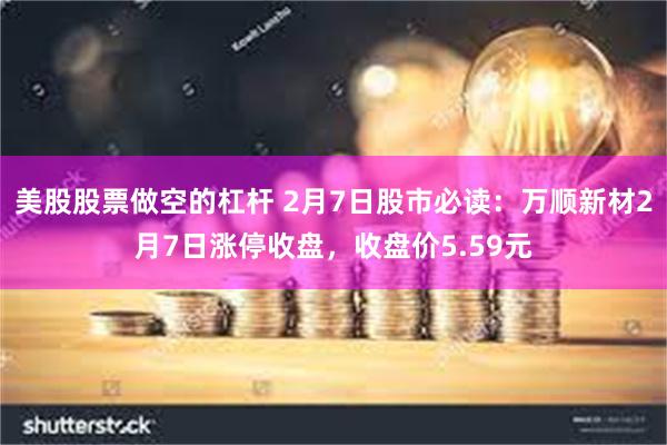 截至2025年2月7日收盘美股股票做空的杠杆,万顺新材(300057)报收于5.59元,上涨19.96%,涨停,换手率8.59%,成交量61.57万手,成交额3.36亿元。